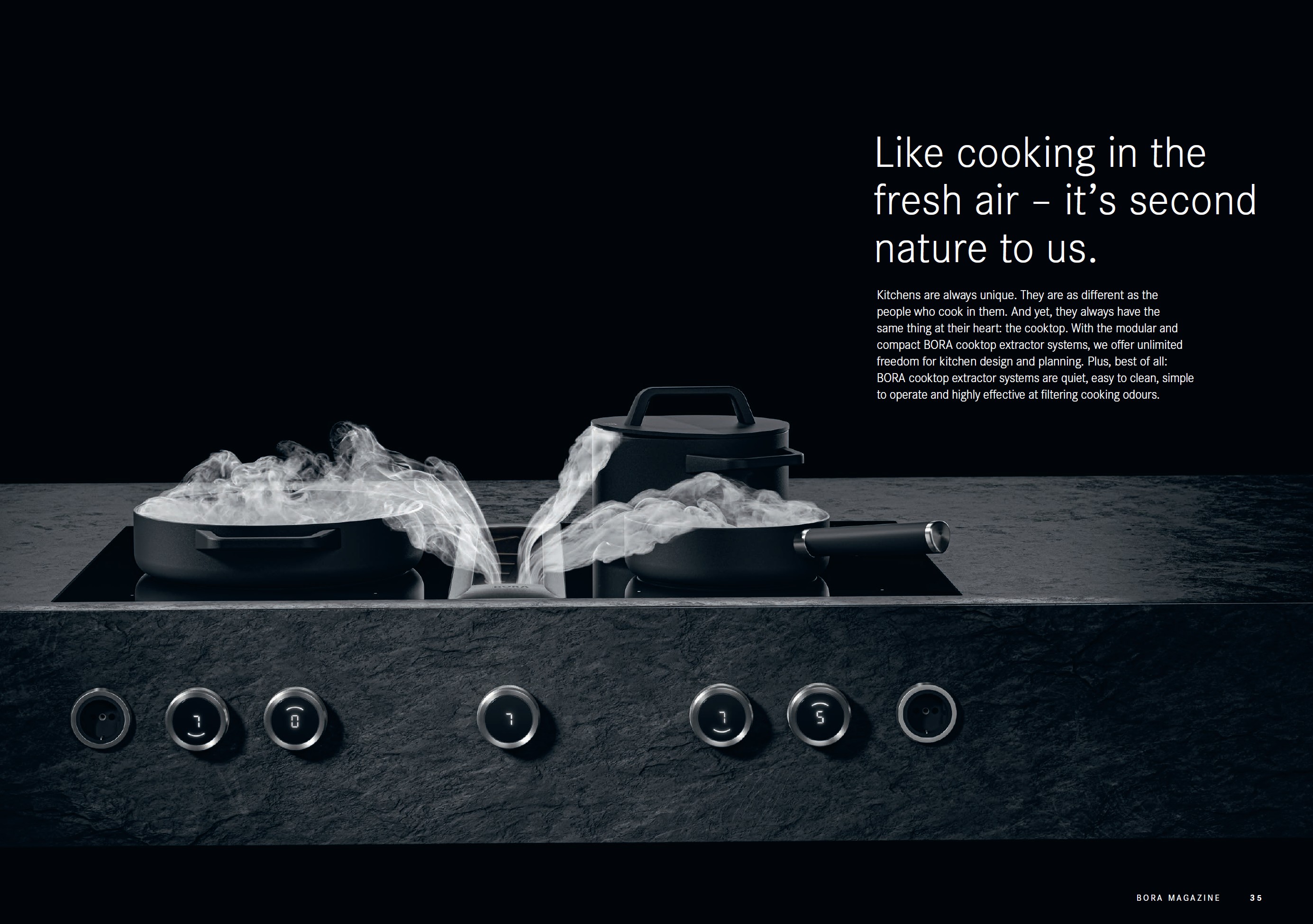 Inside, you’ll also find recipe ideas, lifestyle features, and a closer look at how BORA products seamlessly combine performance with design freedom.